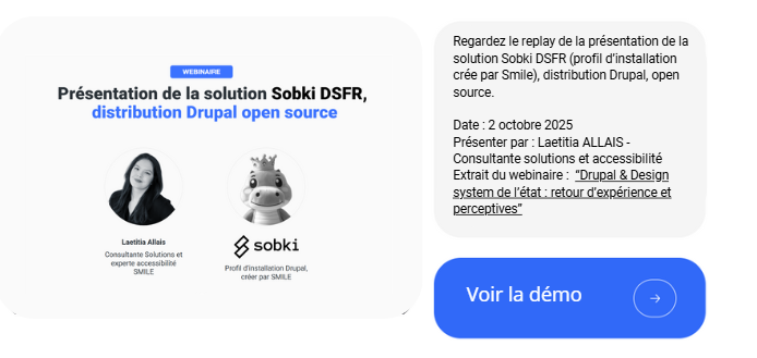 Replay de la présentation de la solution Sobki DSFR, extrait de notre dernier Webinaire : “Drupal & Design system de l’état : retour d’expérience et perceptives”